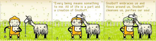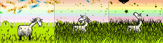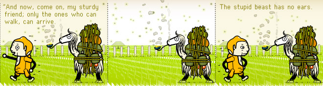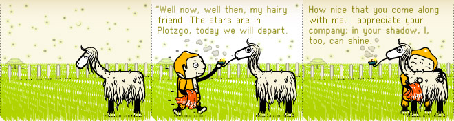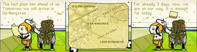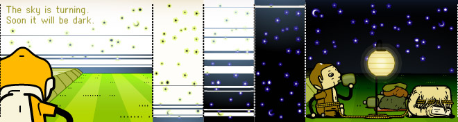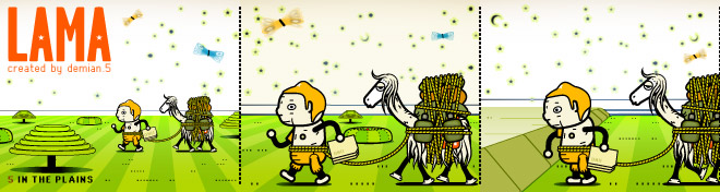 Instead of splitting the story into panels, he created a series of horizontal scrolls — something only possible on the Internet. Employing exclusively digital tools, using an orange-centric palette and rendering characters that were somehow boxy but cute, the story moved according to mouse clicks on the right arrow.